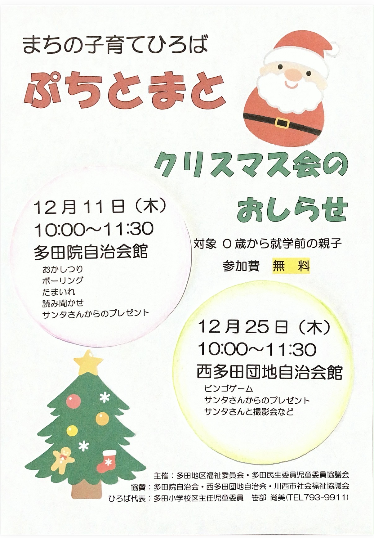 12/11(木)と12/25(木)に、クリスマス会🤶🎄を開催します❗️対象は就学前のお子さんと保護者のかた。