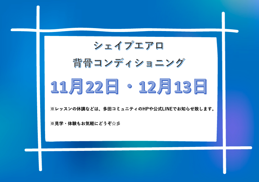 ※シェイプエアロは、体育館での実施に戻っています。室内シューズ、忘れずに!!